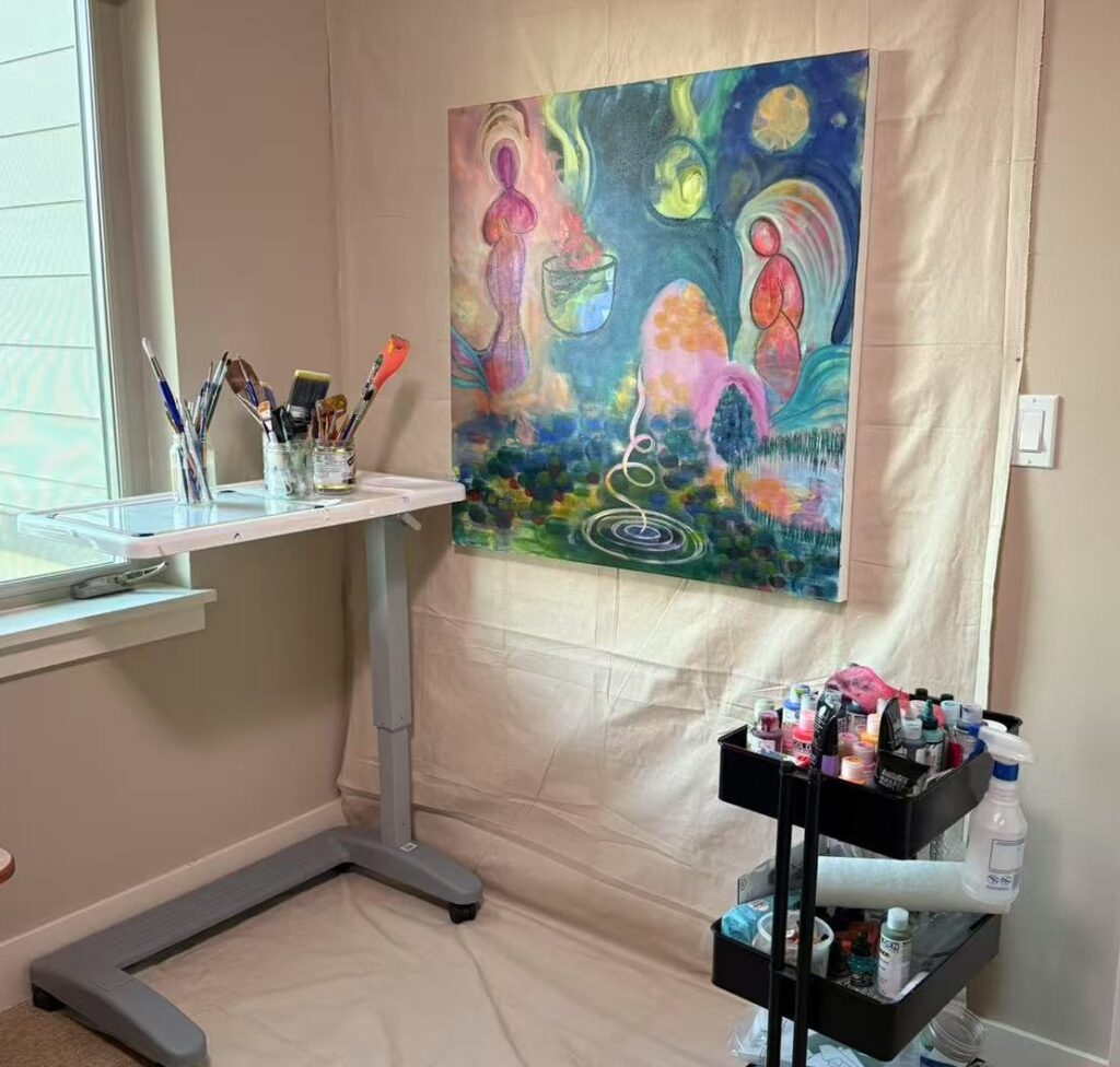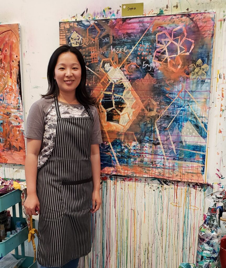 Hi, I’m Sophia Wang – an intuitive artist based in Seattle. After living in China, Singapore, and Toronto, I now call Seattle home with my family. I began my intuitive painting journey in 2019 shortly after moving to the beautiful Pacific Northwest.